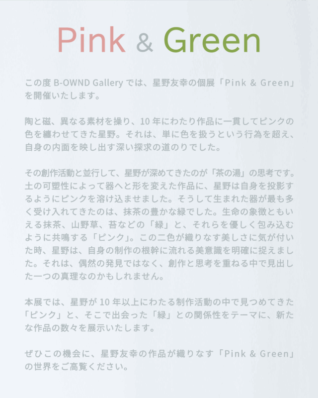 星野友幸個展 Pink&Green @B-OWND Gallery